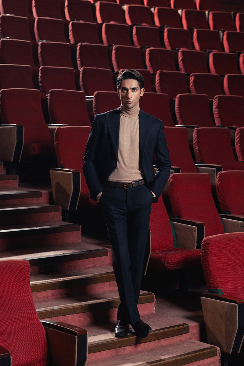 Navy Blue Striped Blazer