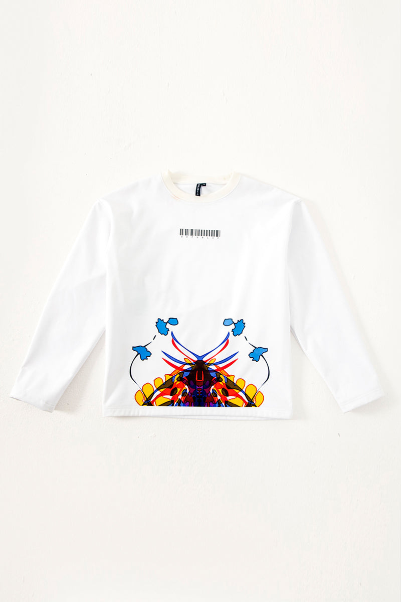 WHITE SOFT SHELL SWEATSHIRT , LONG SLEEVES, REGULAR FIT, BUTTERFLY DIGITAL PRINT DESIGN ON FRONT