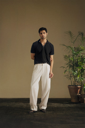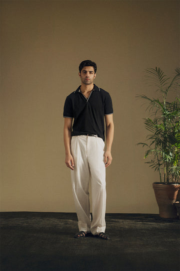 Carbon black mesh polo , with johnny collar and black and white ribbed collar.
