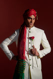Russet brown, embroidered open sherwani, with embroidered floral pattern. Detailed with Dori embroidery and geometric pattern borders.