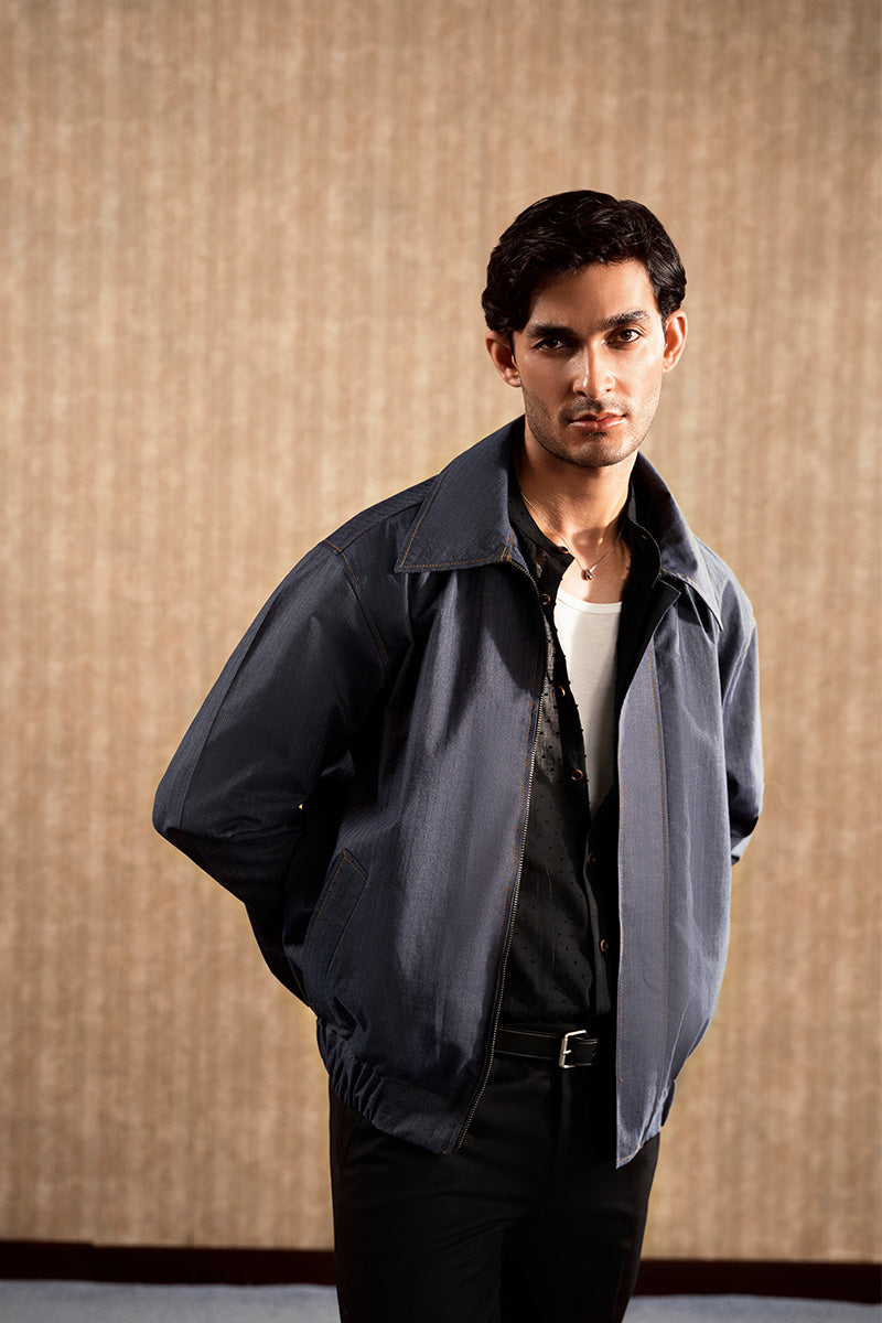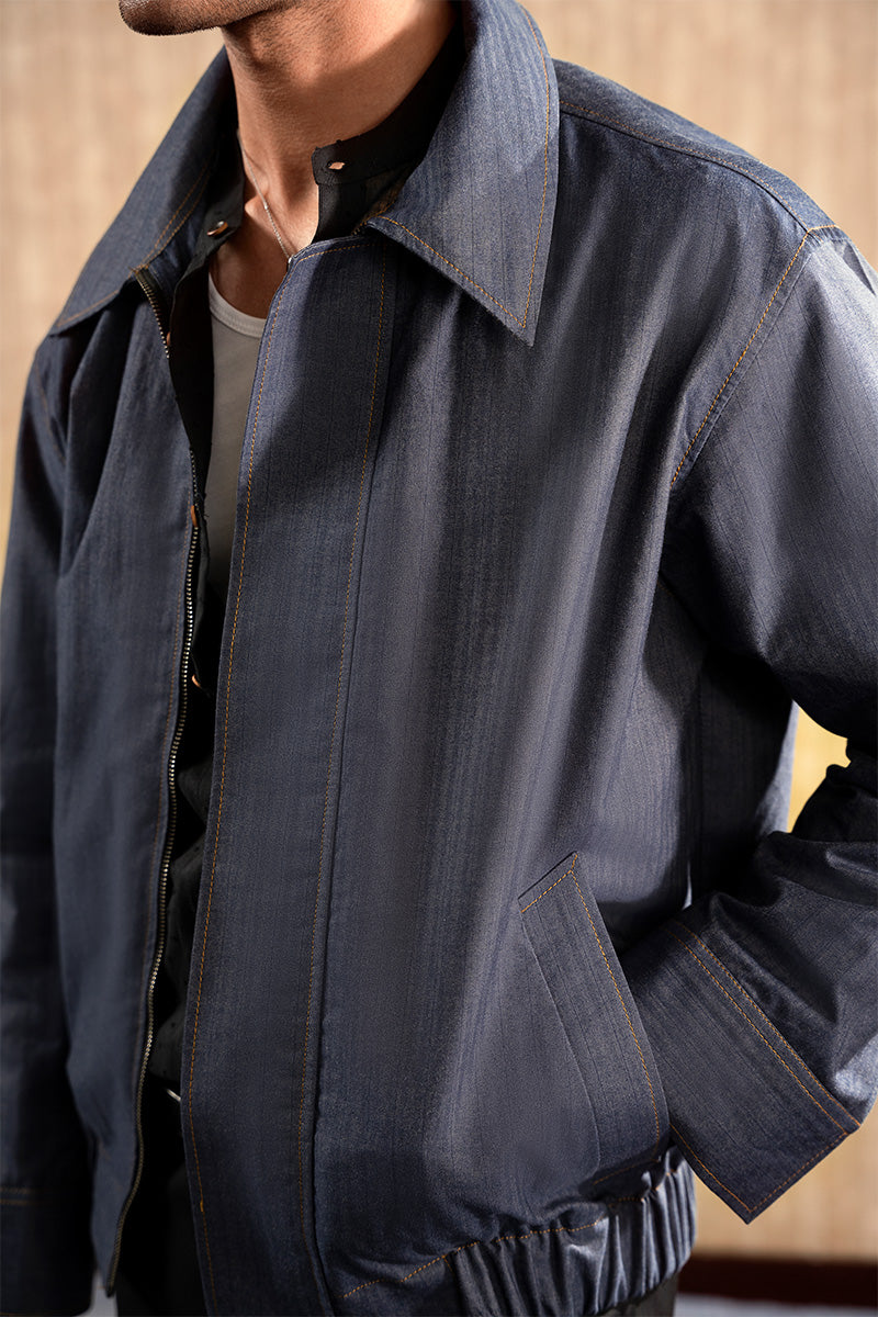 Lightweight washed denim zip-up shacket, with a silver metallic zip and besom pockets.