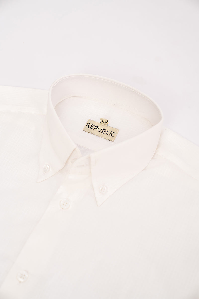 Off white formal shirt in tailored fitting with line texture on the fabric.